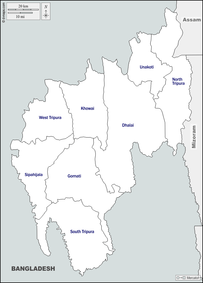 • Location: Tripura is located in the northeastern part of India, bordered by Bangladesh on the west, south, and east, and the Indian states of Assam and Mizoram to the north and east respectively.